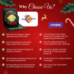 Holiday Cheer – Experience Christmas magic with a wreath-themed card. It plays “We Wish You a Merry Christmas” while “Merry Christmas” lights up, adding much joy and warmth to your celebrations.